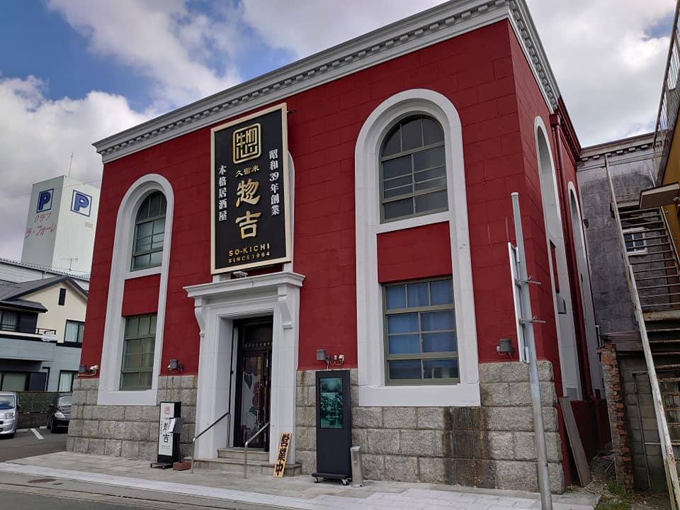 この建物は1968年に久留米市に売却され久留米市立中央図書館西分館として市民に親しまれてきました。入口上部の看板に当時の文字をかすかに読み取ることができます。中には分厚い金庫用の扉が残されており、ここが銀行であったことを偲ばせるものとなっています(右写真は図書館時代)。現在は「惣吉」という居酒屋の建物になっています。
