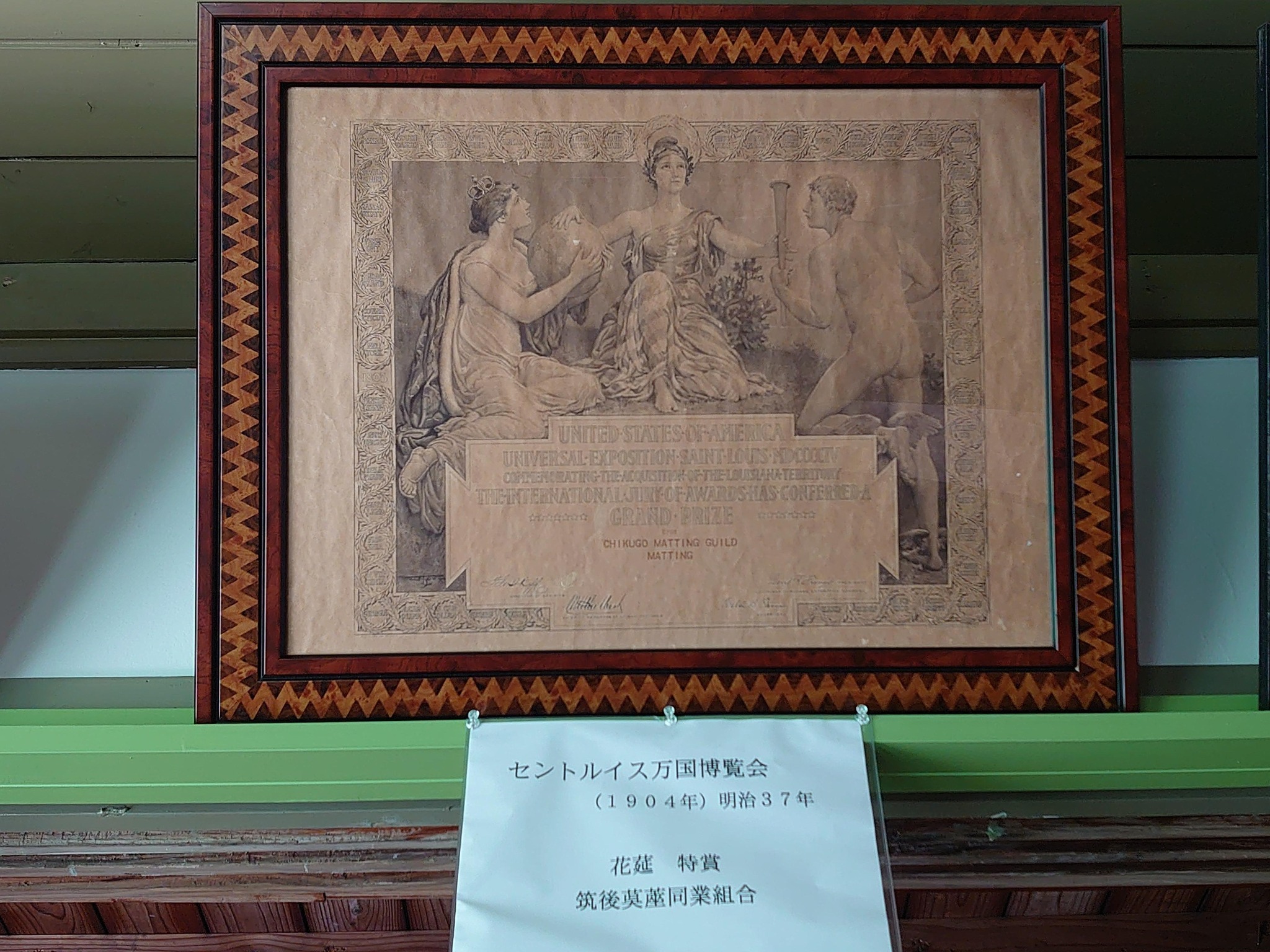 会議室には歴代役員の方々の写真の他に海外の万博に出品した時の表彰状が複数あります。