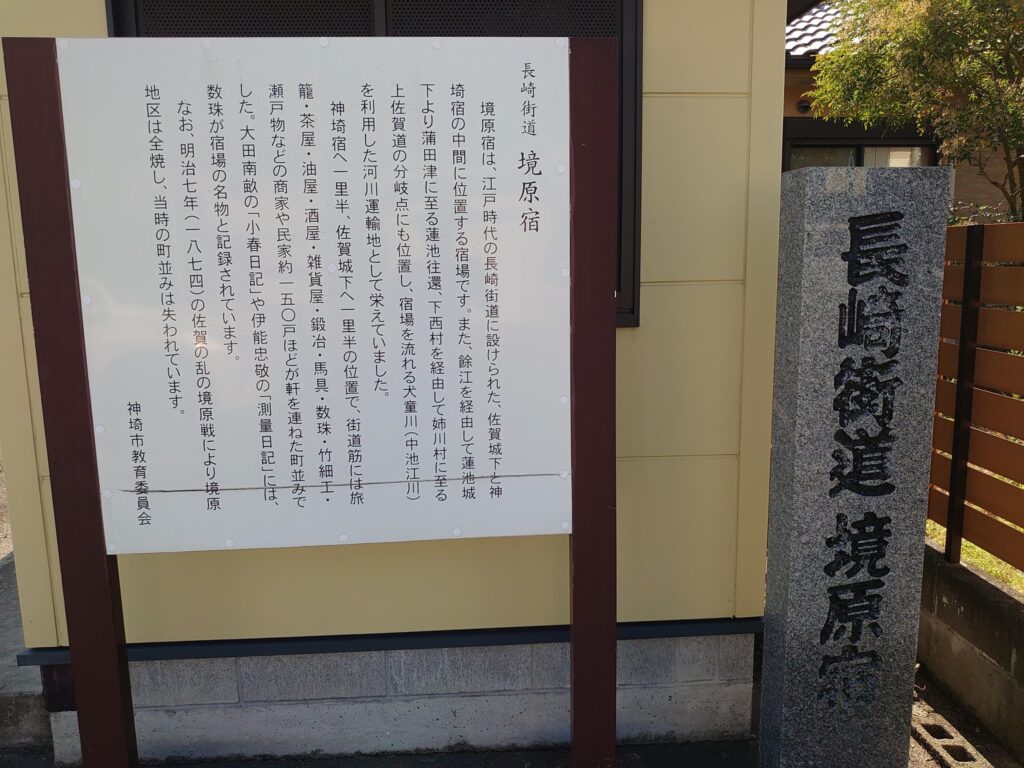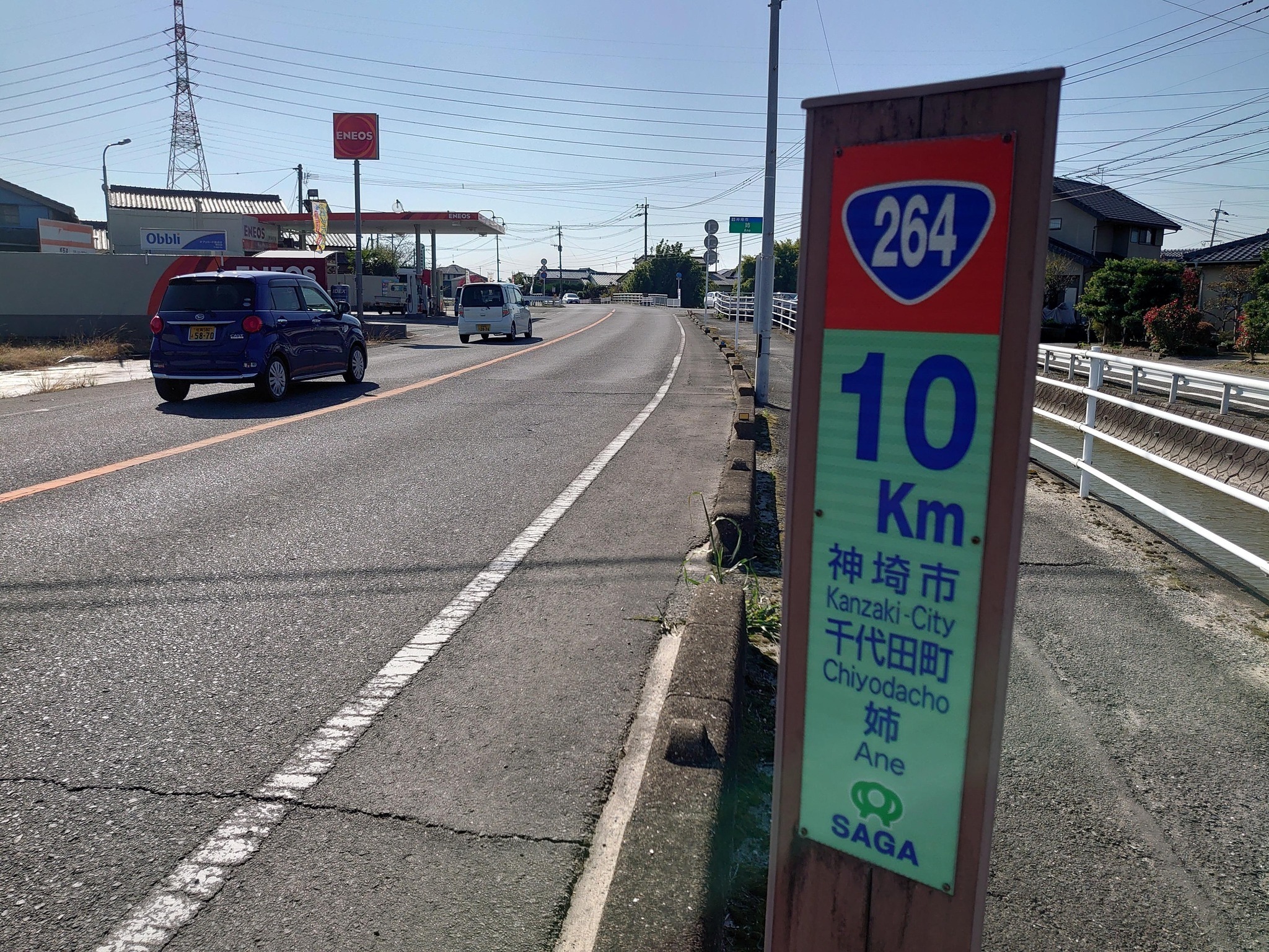 道路上に佐賀までの距離が示されている。高野山の「町石」に似てマッピングの意味がある。