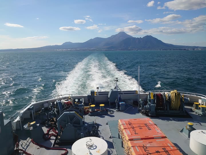 島原港から熊本港へ。高速フェリーで雲仙普賢岳に別れを告げました。日日是好日。