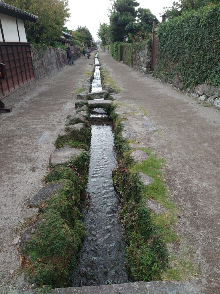 島原の素晴らしい景観。鉄炮町(下級武士の街)の街並。昔ながらの水の流れ。この水は若干北方にある熊野神社の湧水を引いたもの。扇状地の湧水こそが島原の生活を支えてきました。