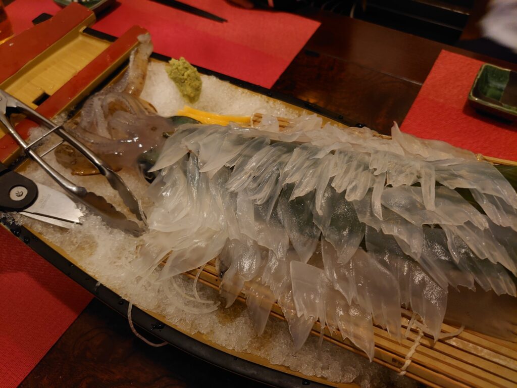 久留米版徒然草 Vol.328 2026年2月23日 / 最終更新日 : 2026年2月22日 webmaster 新鮮な魚で接待 今宵は司法修習生を接待。朝から付き合ってもらっているので当然のことだ。お店がある朝妻町は事務所から若干遠いのでタクシーで出向く。透き通ったイカは呼子のもの。 ぷりぷりのアジは豊後水道のもの。 サザエは磯野さんちから。 @魚真(久留米市朝妻町)。新鮮な魚が美味しい名店です。2026/2/6