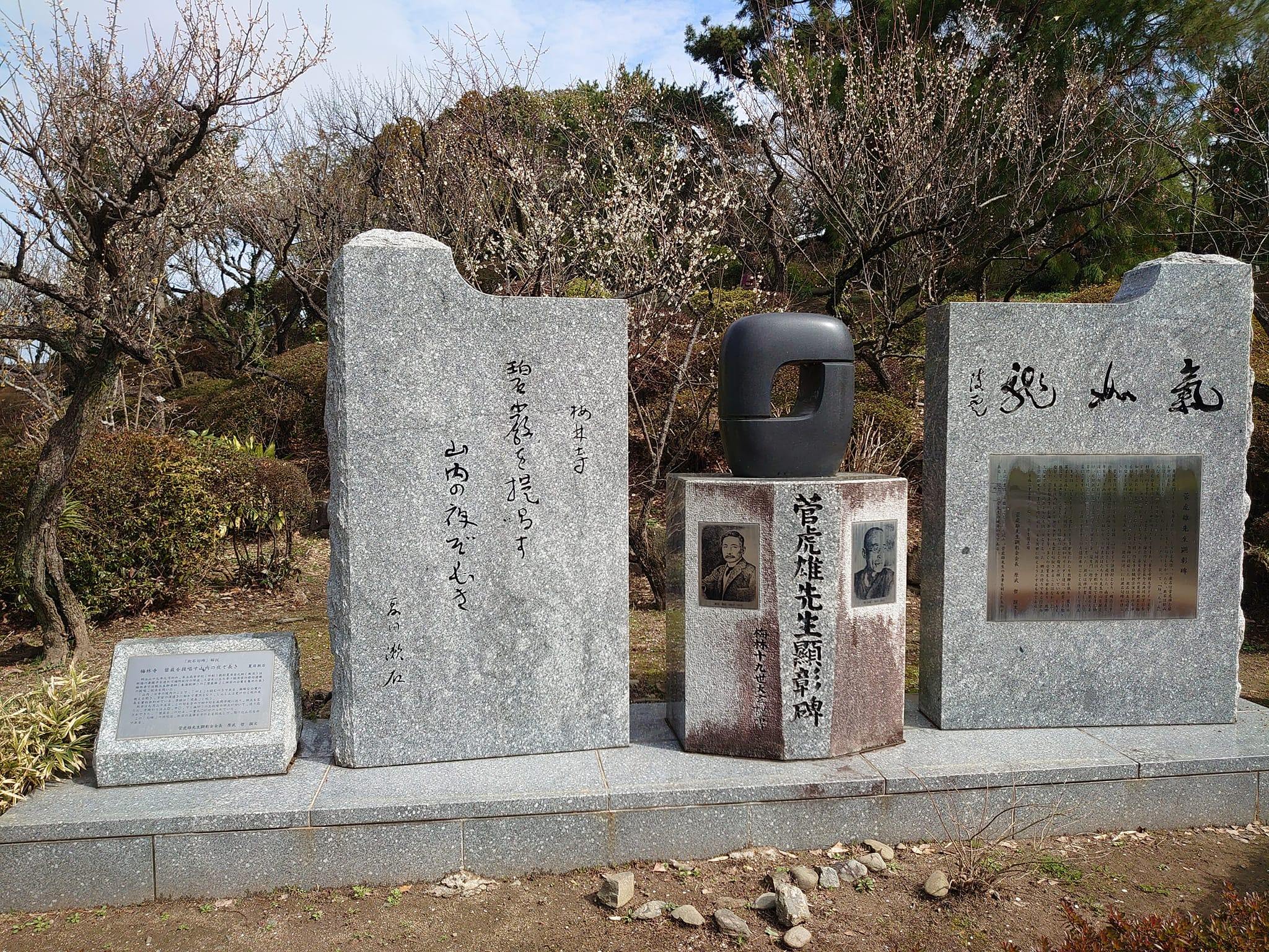 菅虎雄と夏目漱石の顕彰碑が外苑に設置されています。